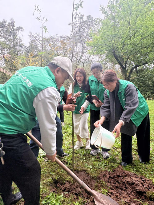 挥锹、填土、扶苗、浇水,简单而真诚的行动里,藏着对自然的敬畏,也藏着每一位伙伴的责任与热爱。